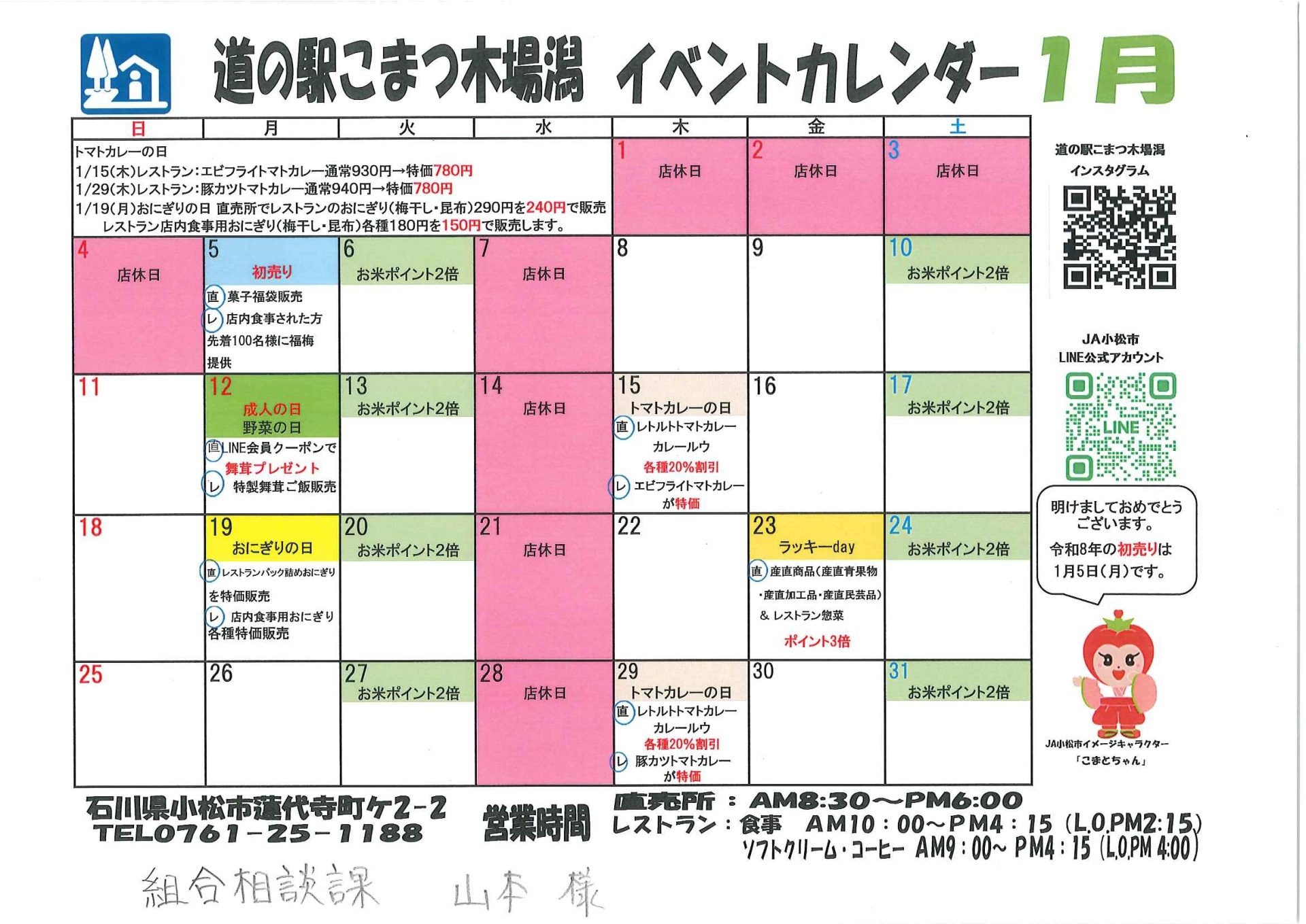 道の駅こまつ木場潟では、1月に様々なイベントを開催します。